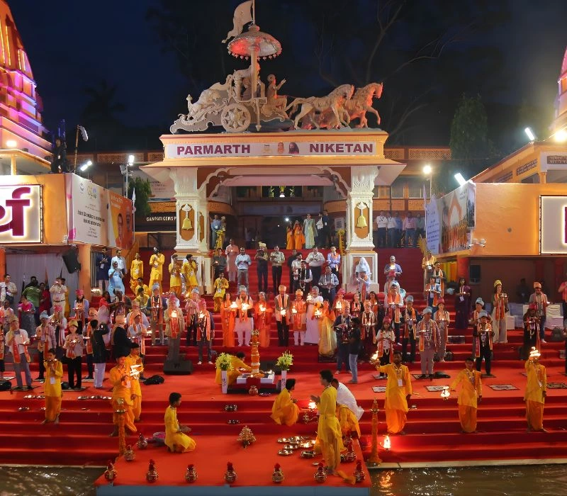 Besides being an ashram, Parmarth Niketan is the centre of well-being all around the globe. Being the venue of the International Yoga Festival, thousands of devotees gather here each year. However, the biggest attraction of the Parmarth is Ganga Aarti which is performed by its Gurukul students in the evening.
